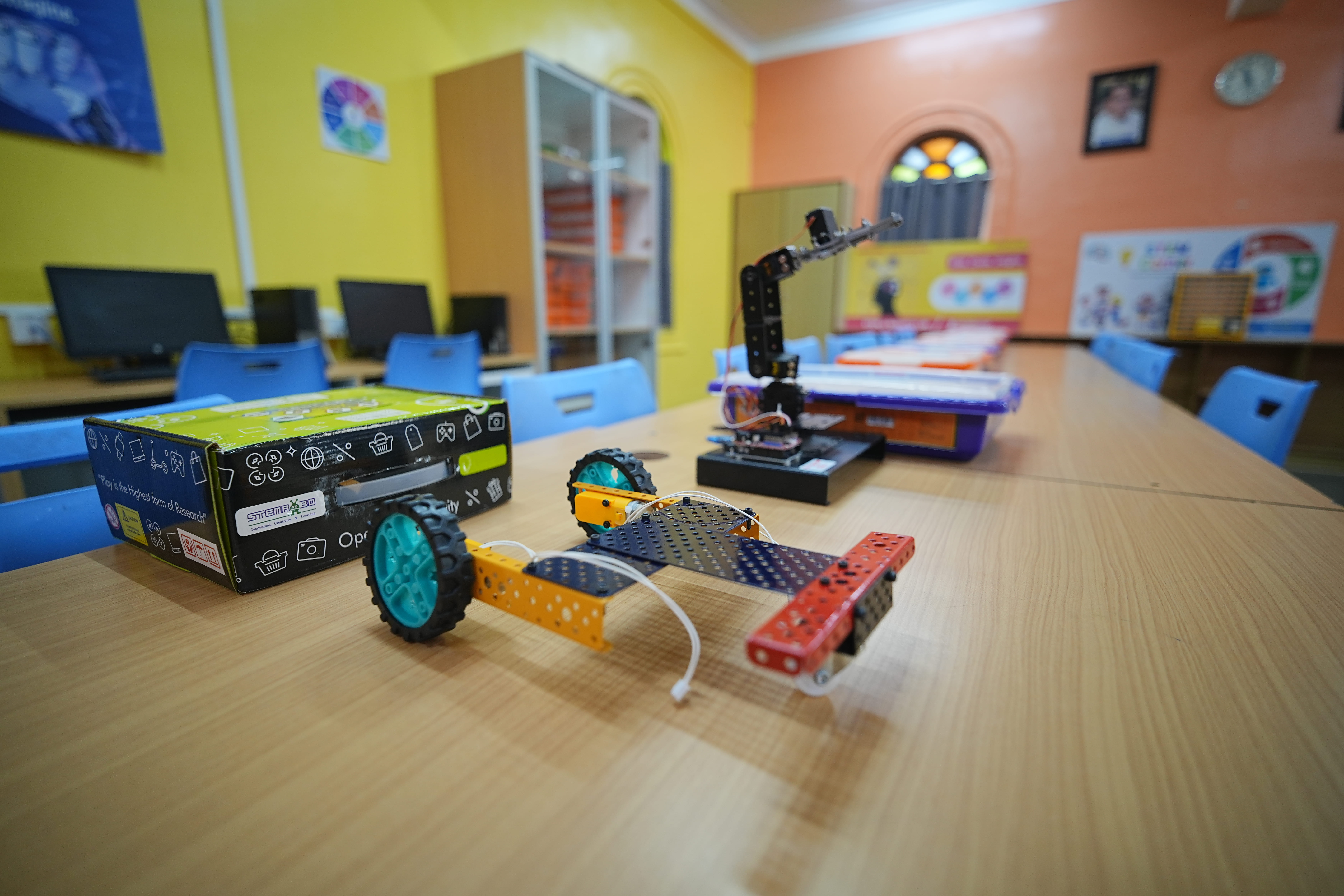 A fully equipped innovation lab in collaboration with STEMROBO, offering a structured curriculum to foster creativity and scientific thinking.